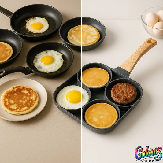 Sartén 4 en 1 Antiadherente para Huevos, Pancakes y Sandwiches – Cocina Rápida, Fácil y con Formas Perfectas
